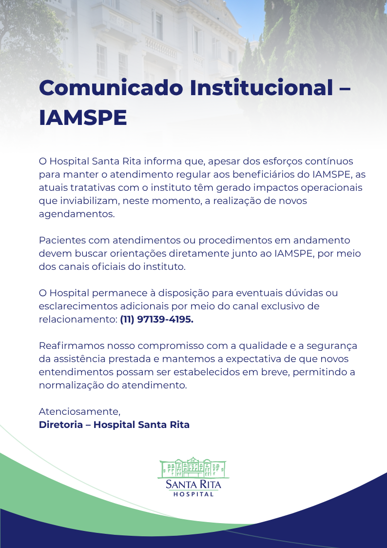 O Santa Rita é uma das mais longevas instituições de saúde na capital paulista. Desde 2022, a instituição vem passando por um momento de refundação e significativas transformações em infraestrutura, serviços e modernização de seu parque tecnológico.